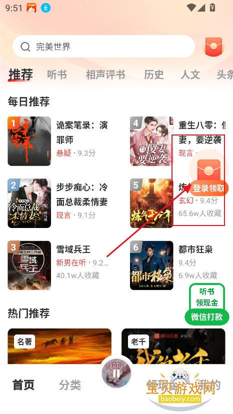 3.听书任务赚红包:完成听书、签到等平台任务即可获得红包奖励,轻松赚取零花。