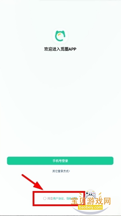 下载安装觅圈,之后打开,选择手机号码或者其他方式登录,勾选用户协议