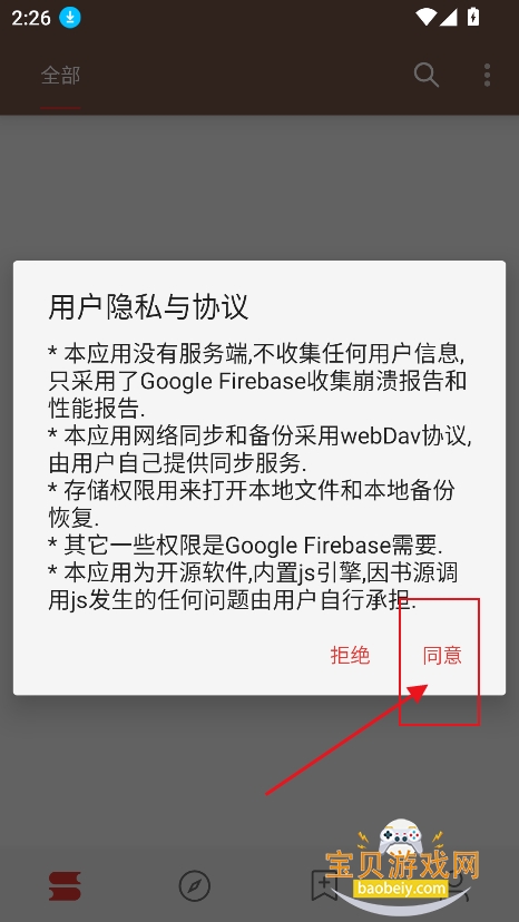 1、进入首页,点击【同意】