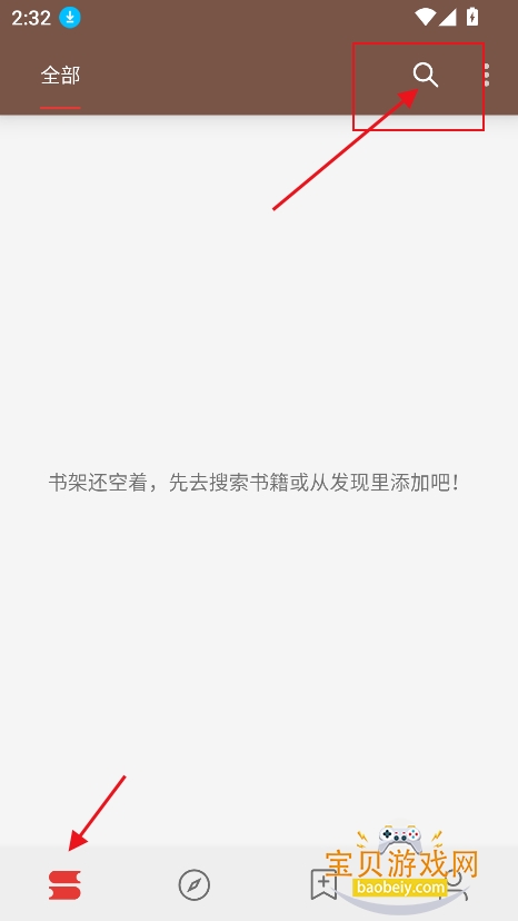 1、进入书架界面,直接点击搜索