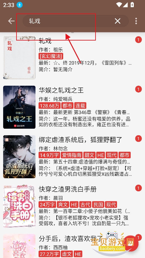 3、根据搜索结果,筛选喜欢的小说漫画