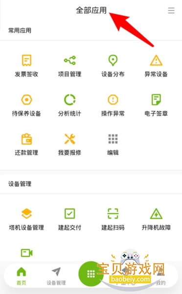 4、点击中部“全部应用”图标,可浏览所有功能模块并根据需要选择常用项添加首页。