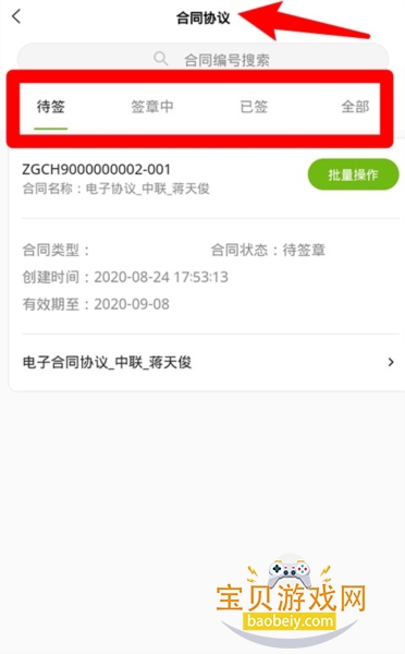 5、在“合同协议”页面可按待签、签章中、已签状态查询并批量处理电子合同信息。