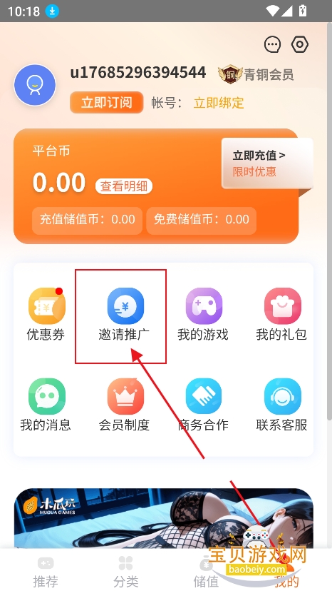 1、进入我的界面,点击【邀请推广】