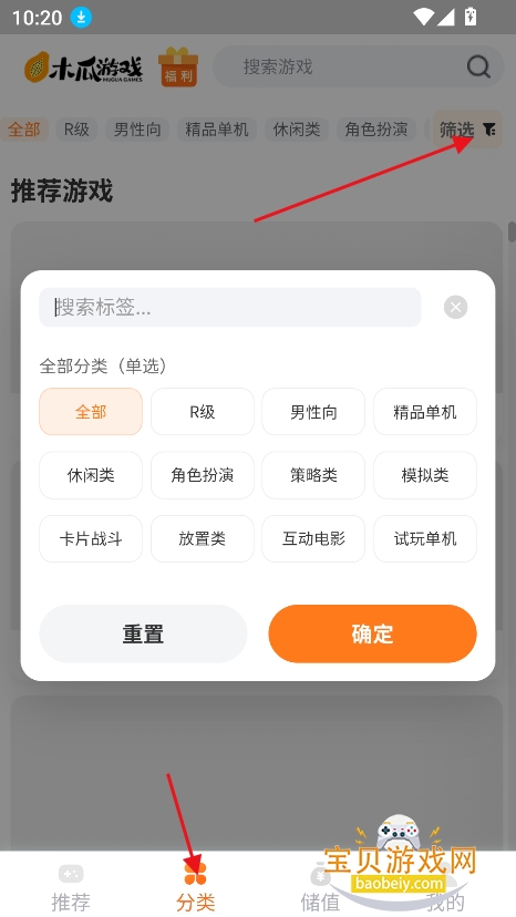 1、进入分类界面,筛选你喜欢的游戏标签