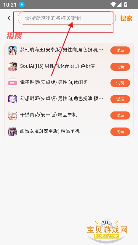 3、或者直接点击搜索框,输入关键词,精准检索游戏
