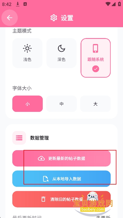 2、进入数据管理界面,可以选择【本地导入】【更新最新的帖子数据】