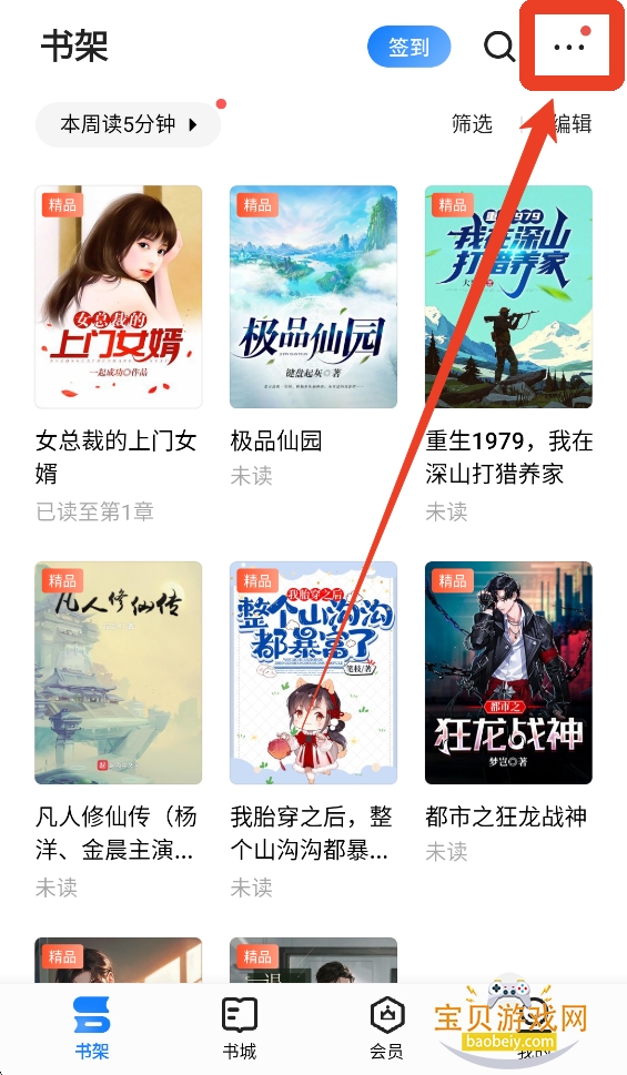 1、有两种方法,第一种是进入到软件后点击下方最左边的【书架】。