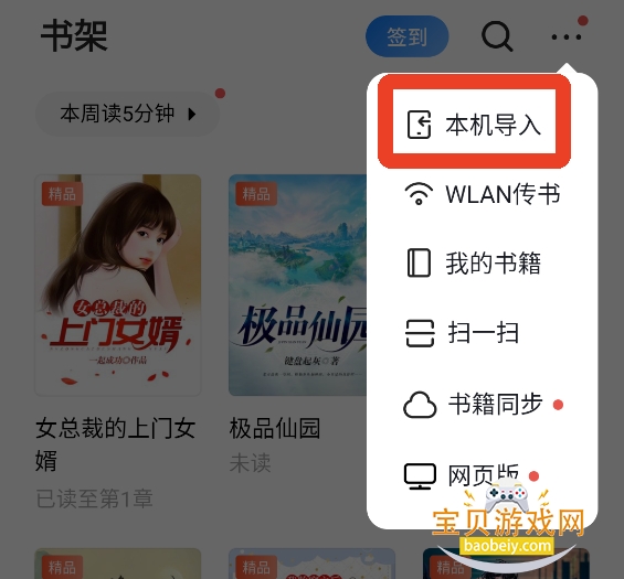 3、选择【本机导入】,可以将手机内的小说导入到软件内。
