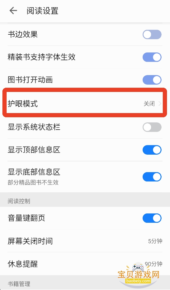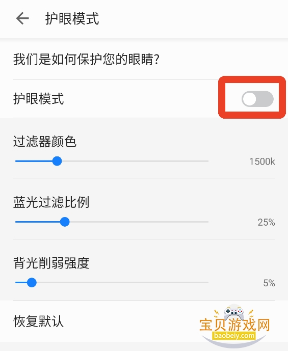 4、下滑找到【护眼模式】,默认是关闭的,点击进入设置。