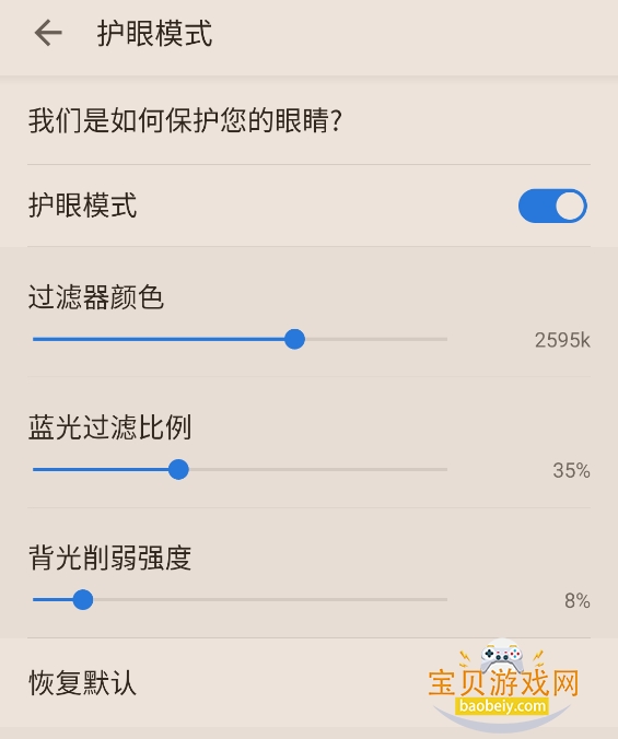 6、可以根据自己的阅读习惯和用眼舒适度自由调整过滤器颜色、蓝光过滤比例、背光削弱强度的数值。