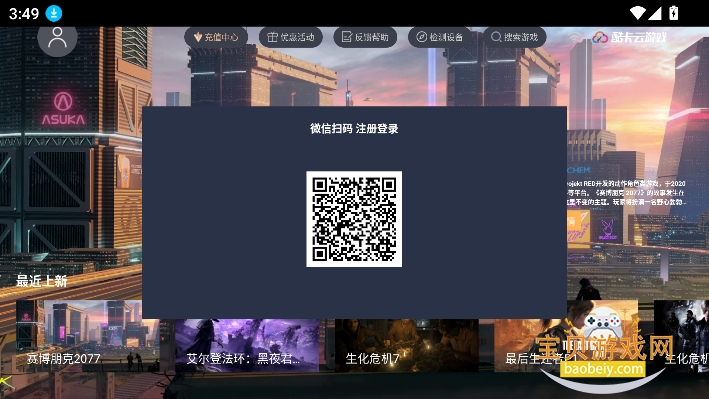 3、选定游戏,扫码登录注册,就可以开始游戏体验了