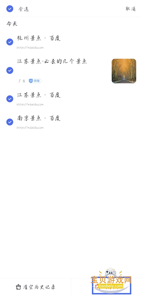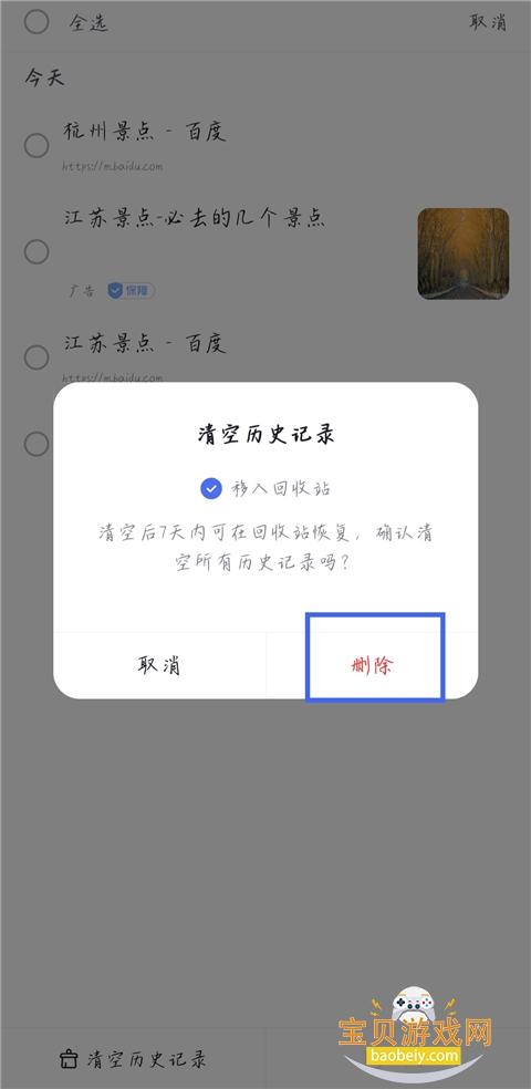 3、将历史记录都勾选上,点击【删除】即可。