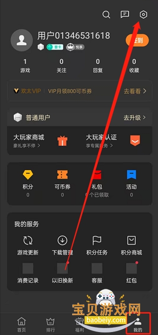 1、进入游戏服务软件,点击我,选择上方的设置。