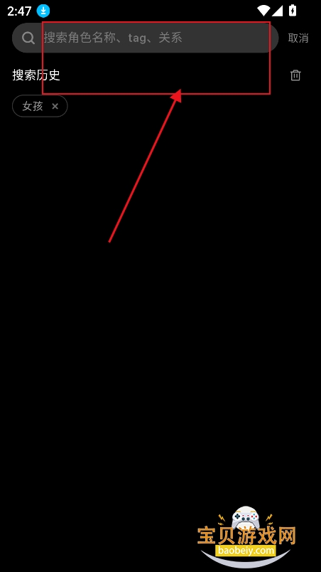 3、再者点击搜索框,输入关键词tag,精准检索角色
