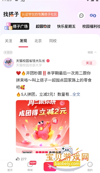 大学生用户:天猫校园APP主要面向在校大学生,提供符合他们需求的商品和服务。无论是日常生活用品、学习工具、服装还是娱乐休闲,学生都能在平台找到适合的商品。