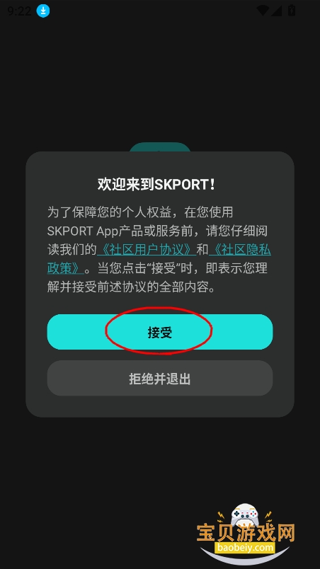 1、在宝贝游戏网下载安装森空岛国际服官方正版,点击【接受】进入