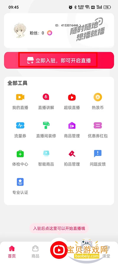 1、在本站下载安装并打开软件来到首页之后,在下方点击红色按钮,进入直播开启页面;