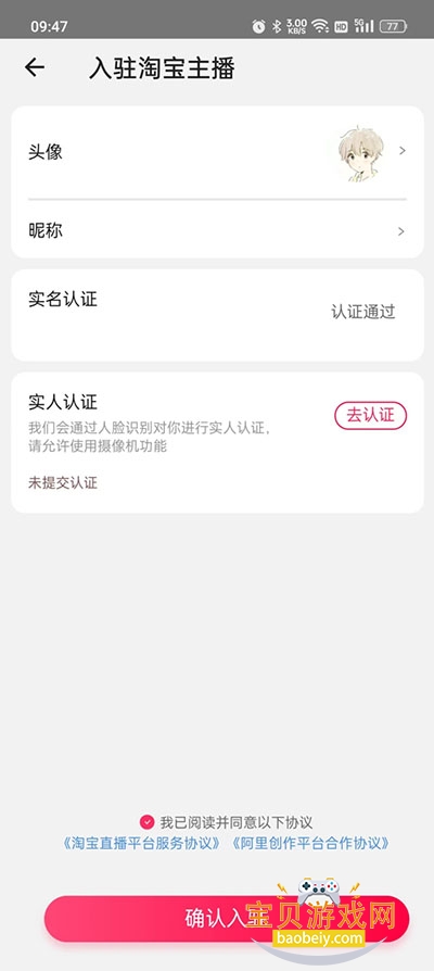 2、在首页的头像下方有一个【立即入驻】的选项,点击进入,先选择实人认证,进行人脸识别;