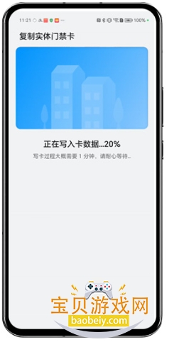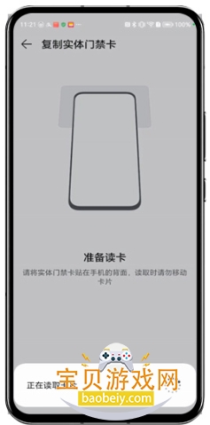 将实体门禁卡紧贴手机背面的NFC感应区域,等待读卡完成。