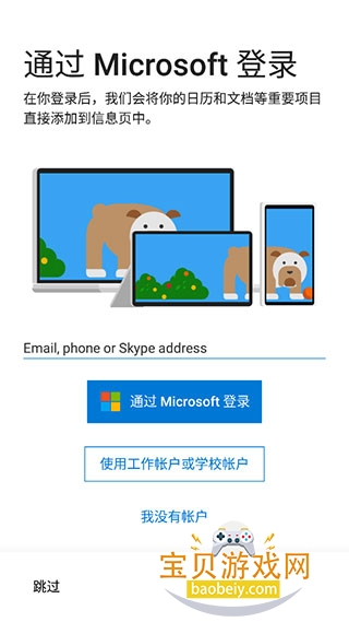 3、点击继续后,看个人需要是否登录微软账户,登陆后可以同步更新电脑上的一些东西,例如日程,代办事项等,不需要的点击左下角跳过即可。