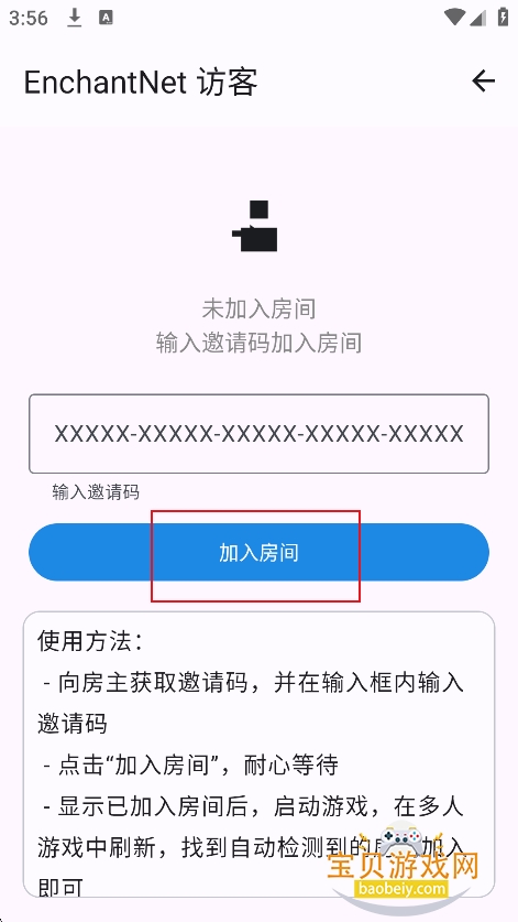 - 向房主获取邀请码,并在输入框内输入邀请码