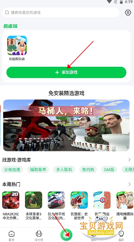 2、选择一款自己想要修改的游戏,点击添加。