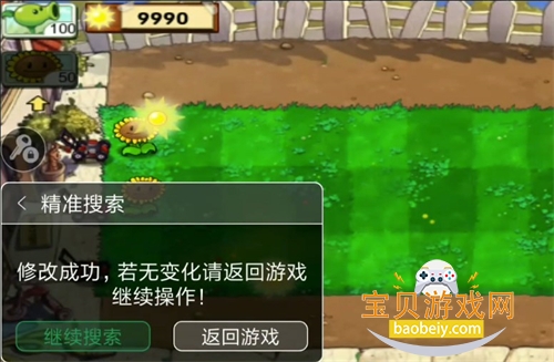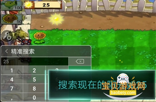 5、输入现在的阳光数值,点击搜索,然后返回游戏搜集一些阳光。
