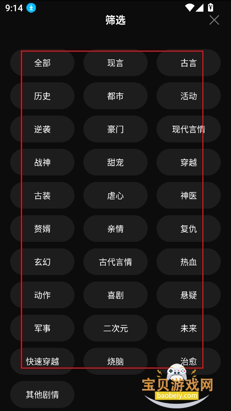 3、点击【筛选】可以解锁更多关键词标签,精准定位喜欢的短剧类型