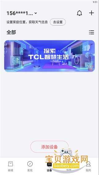 1、打开TCL智慧生活APP,点击“设备”,再点击添加设备;