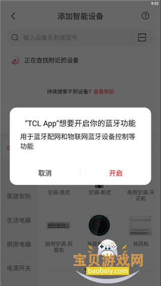 2、之后TCL APP需要开启蓝牙功能,用于蓝牙配网和物联网蓝牙设备控制等功能;