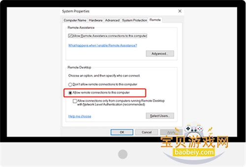 2、系统属性将打开到远程选项卡。请注意,您需要在要连接的 PC 上启用传入的远程连接。