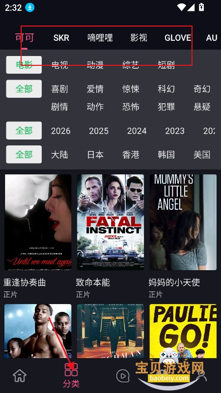 1、进入影视分类界面,可以筛选喜欢观看的类型