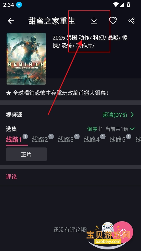 1、进入喜欢的影视界面,点击上方【下载】按钮