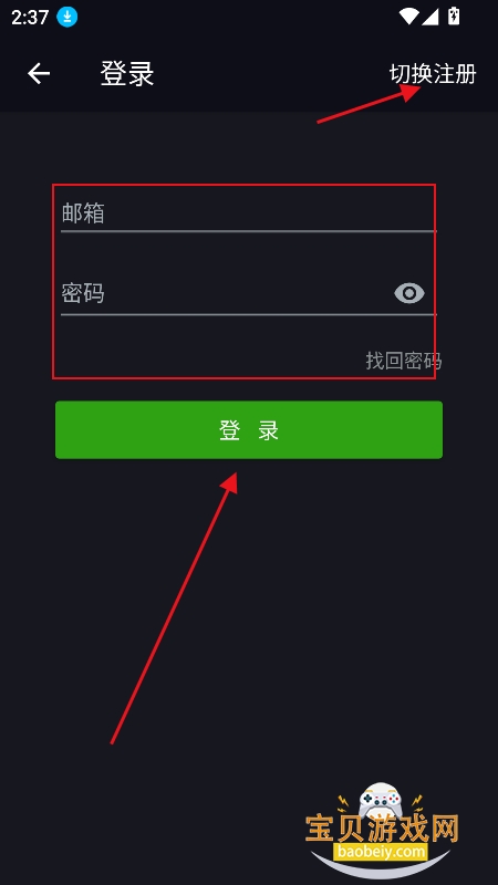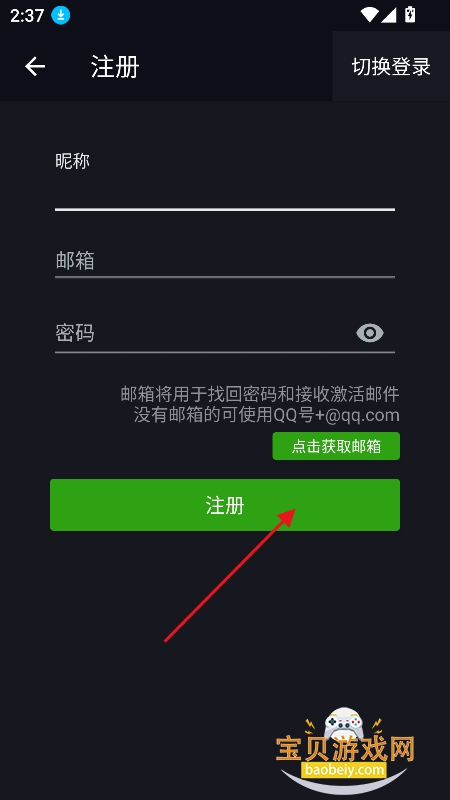 3、或者点击右上角切换到注册,输入基本信息,完成注册