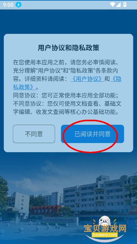 1、在宝贝游戏网下载安装智慧山信app安卓版,点击【已同意并继续】