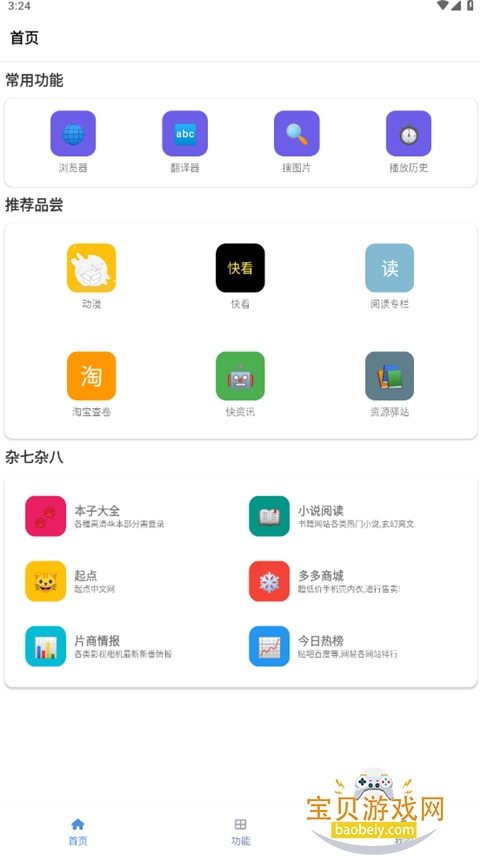 日常工具:翻译器、搜图、播放历史、天气预报、快递查询等,快速解决生活小问题。