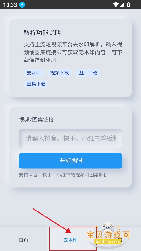 1、进入首页,直接点击【去水印】板块