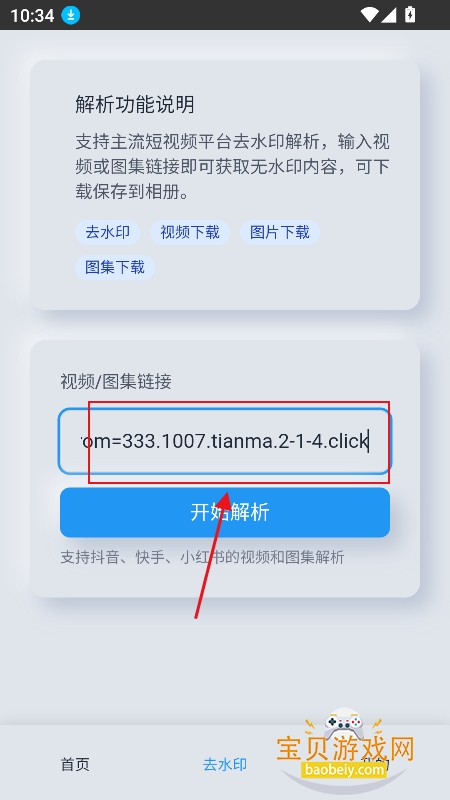 2、输入需要解析的视频地址,点击【开始解析】