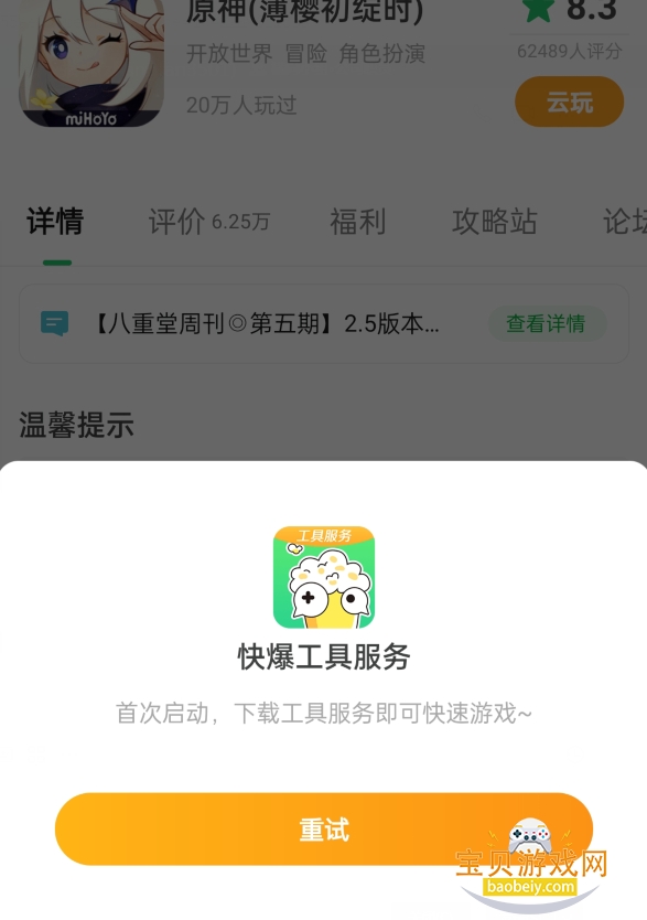 ②“快爆工具服务”无法下载,提示“重试”问题,如下图: