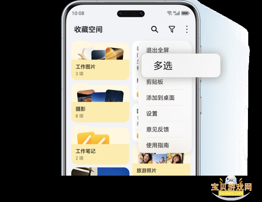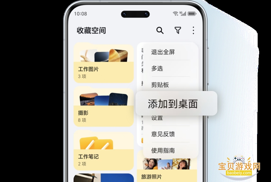 无论是网页、文档、图片、视频还是链接,三指下滑,直接收藏到收藏空间。