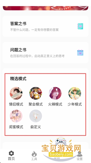 3、返回首页,在下方的精选模式中,可根据不同聚会或娱乐场景,选择对应的模式,让游戏更加贴合氛围。