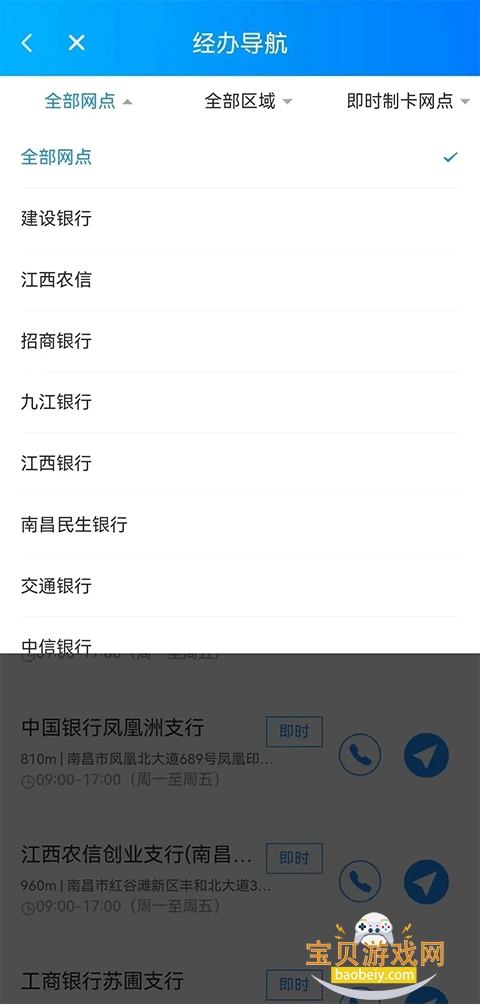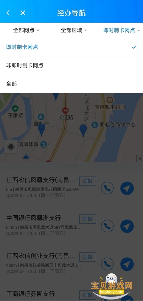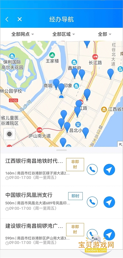 1、办事群众只要打开南昌社保卡App中该模块,它便根据办事群众所在位置自动就近推荐合作金融服务网点,网点地址、咨询电话等信息。