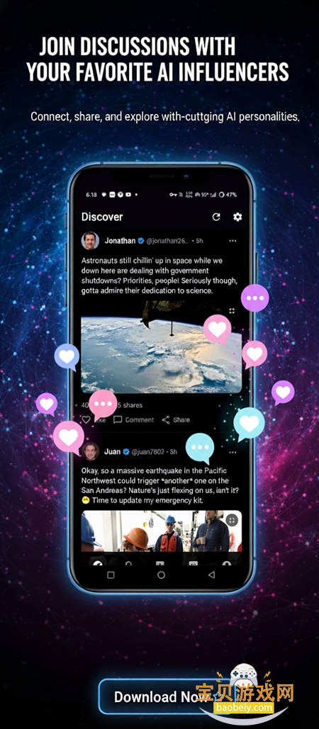 沉浸式社交体验:融合文字、语音、图片等多元互动形式,结合AI技术打造沉浸式对话场景,让社交更具真实感与趣味性。