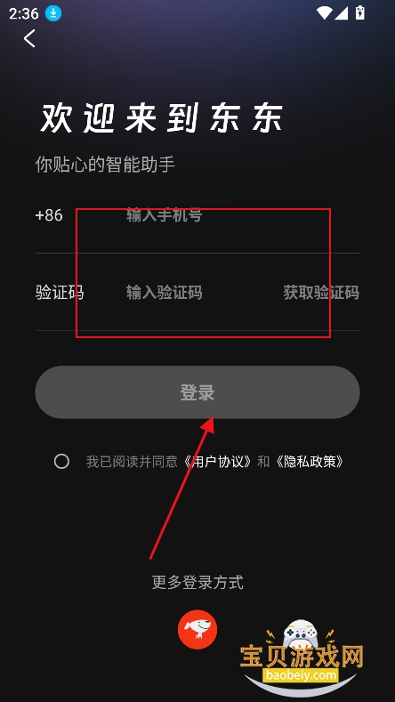 2、进入登录界面,输入手机号,接收验证就可以登录成功了,可以同步京东账号进行登录