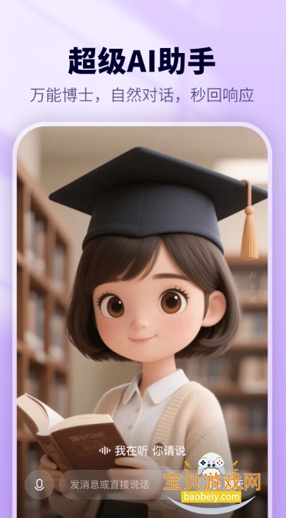 AI智能助手免费版合集,宝贝游戏网为大家整理了几款非常好用的智能AI助手应用,功能丰富,集智能问答与聊天、AI创作、AI绘画等多种功能于一体,可以全方位满足大家的使用需求,覆盖学习、工作、生活、娱乐等不同场景