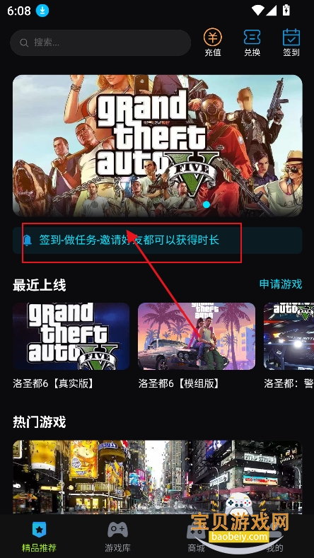 3、签到做任务,邀请好友加入都可以获得免费游戏时长