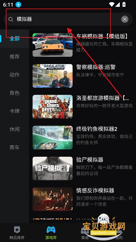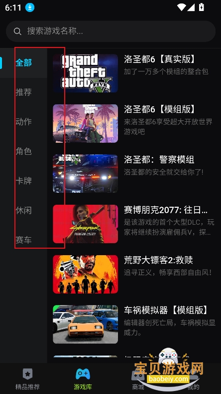 2、进入【游戏库】还有更多游戏分类。类型可以选择