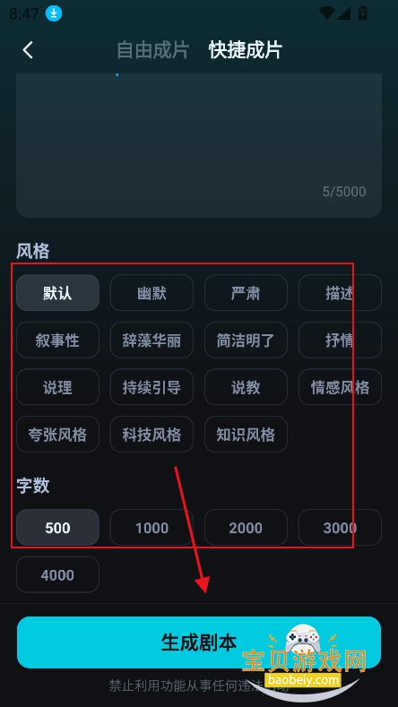 1、进入首页,可以选择【自由成片】或者【快捷成片】