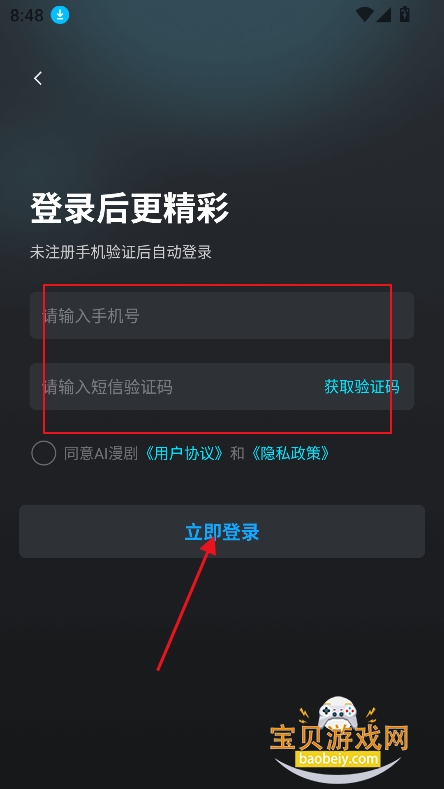 2、输入手机号,接收验证码,点击登录即可,新手机号自动注册为新账号